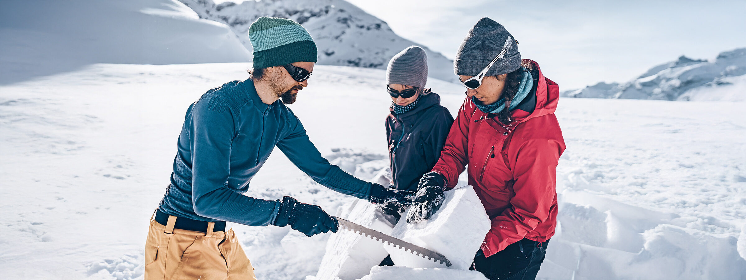 Pour construire soi-même un igloo, il faut non seulement beaucoup de neige et des outils adaptés, mais aussi une équipe soudée. La construction est complexe et ne peut aboutir que si tout le monde travaille de concert. Elle convient idéalement aux activités de groupe visant à renforcer l’esprit d’équipe. La construction de luges à Grindelwald est particulièrement créative. Des équipes de huit à dix personnes peuvent construire et concevoir leur luge à partir de différents matériaux tels que du bois, du rembourrage, du treillis métallique, du carton, du papier, de la peinture et bien d’autres choses encore. L’objectif : concevoir un véhicule aussi original et maniable que possible. Enfin, la sculpture sur glace nécessite aussi de travailler en équipe. A partir d’un bloc de glace, le groupe crée une petite œuvre d’art, idéalement sous la direction de sculpteurs expérimentés. Le travail avec ce matériau familier, néanmoins inhabituel, offre de nombreuses possibilités artistiques et une expérience hivernale d’un autre genre.